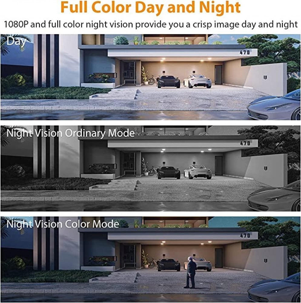 - *إنذار ضوئي وصوتي: سيتم تنشيط هذه الكاميرا الخارجية لحظة اكتشاف حركة الإنسان. ثم تقوم بتشغيل ضوء الفيضان الصغير تلقائيًا، وتنبيه صفارة الإنذار، وتسجيل المشهد وترسل تنبيهات إلى هاتفك الذكي. تحبط أي جريمة قبل حدوثها