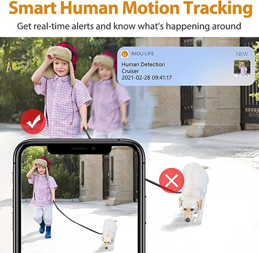 - *تتبع ذكي للحركة البشرية: خوارزميات الذكاء الاصطناعي المتقدمة تميز تحرك جسم الإنسان عن الحركات الأخرى لتصفية الإنذارات الكاذبة. تتتبع كاميرا الواي فاي تلقائيًا الشخص المتحرك، وتسجل مقاطع الفيديو في الوقت الفعلي وترسل تنبيهات إلى هاتفك الذكي على الفور
