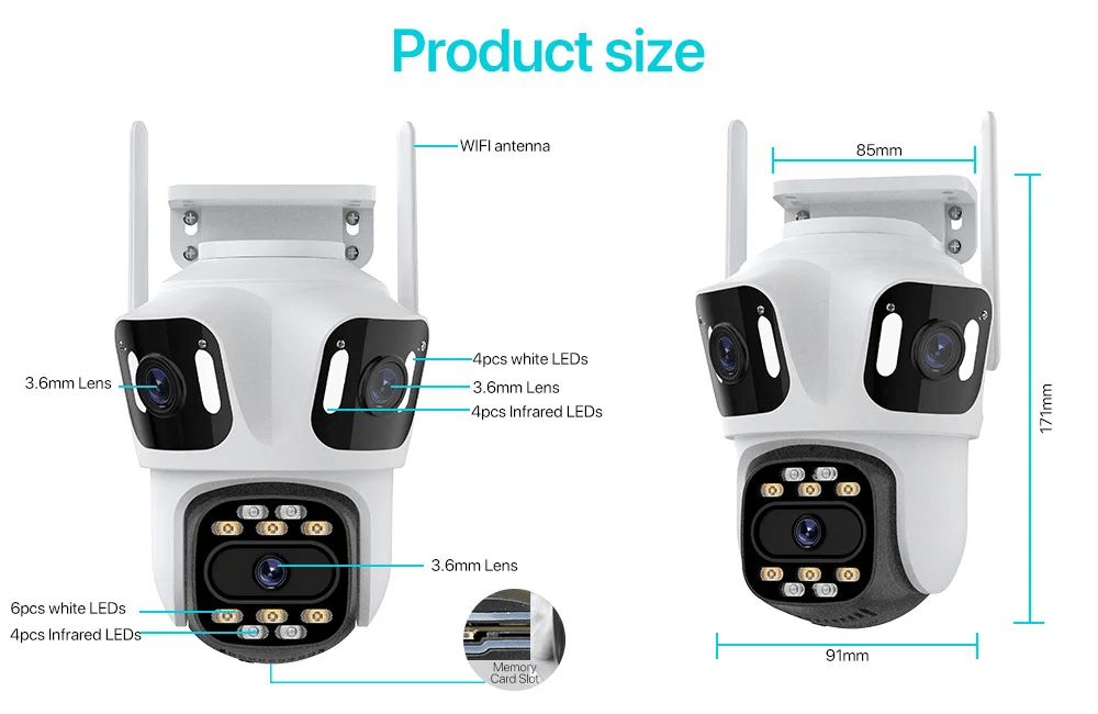 🛡️ كاميرا العدستين توفر لك رؤية مزدوجة تغنيك عن تركيب كاميرتين منفصلتين، مثالية لتغطية الزوايا والمداخل والمواقع المفتوحة بكفاءة وذكاء.