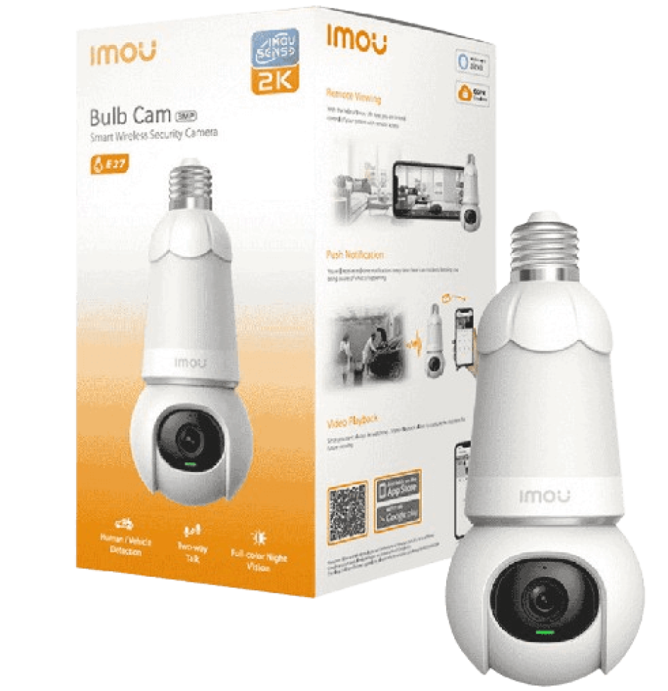 قدّم الأمان لمنزلك مع Bulb Cam الجديدة من IMOU، تجمع بين تصميم لمبة عصري وكاميرا مراقبة بدقة 3K UHD (3MP). تركب مباشرة في مقبس E26/E27 بدون أي تمديدات معقدة، وتمنحك حماية شاملة بزاوية رؤية بانورامية وتحكم ذكي عن بُعد عبر تطبيق IMOU Life.